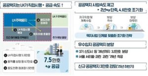 그간 인·허가, 보상 등 공공택지 조성 과정에서 반복적으로 발생해 온 지연 요인은 단계별 맞춤형 조기화 전략을 마련하여 사업기간을 2년 이상 단축하고, 4.6만호 주택을 추가 공급한다.