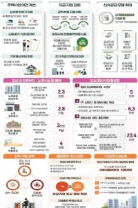 둘째, 노후시설·유휴부지를 활용하고 재건축·재개발 사업을 촉진함으로써 주거 선호도가 높은 도심에 공급을 확대한다. 역세권 등 도심 내 주요 입지에 위치한 30년 이상의 노후 공공임대주택을 최대 용적률 500%까지 상향해 고밀도로 전면 재건축하여 2.3만호 주택을 공급할 계획이며, 도심 내 유휴 국공유지와 준공 30년이 지난 노후 공공청사 등은 의무적으로 복합개발을 검토하고, LH, 캠코 등이 사용권을 확보하여 속도감 있게 사업을 추진할 수 있도록 특별법을 제정하여 2.8만호 주택을 공급할 계획이다.